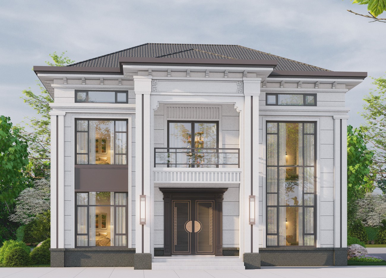 米易12 新中式两层半(12.8x13.06米)-【易设计】